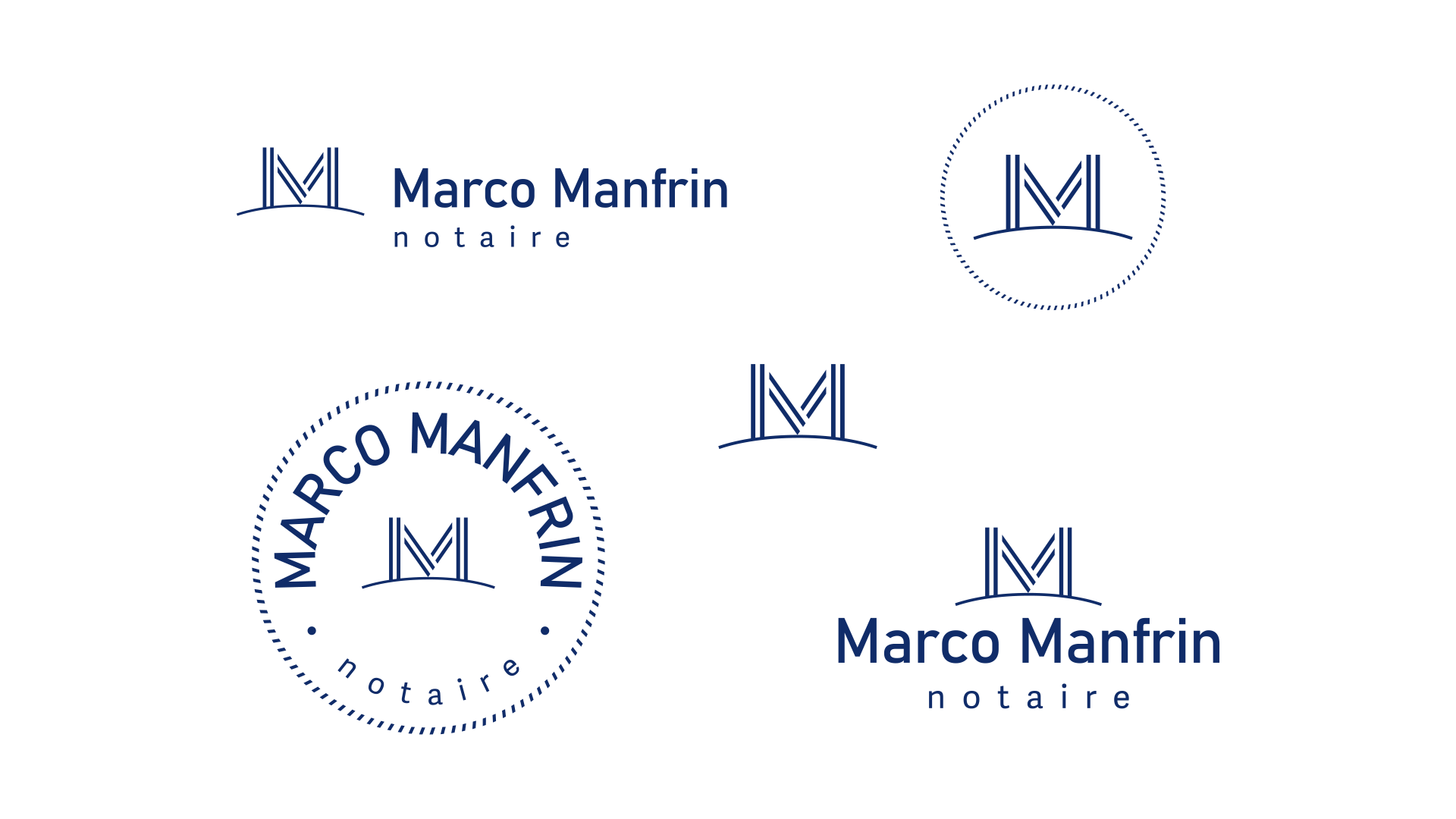 The brand concept is built around the professional’s initials, with two interwoven “M” letters forming a symbol that conveys tradition, stability, and institutional strength.